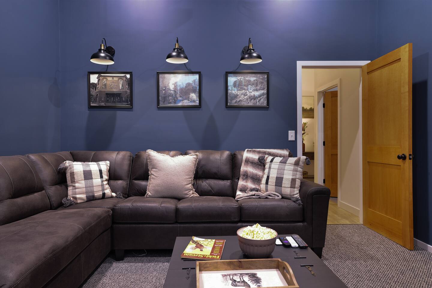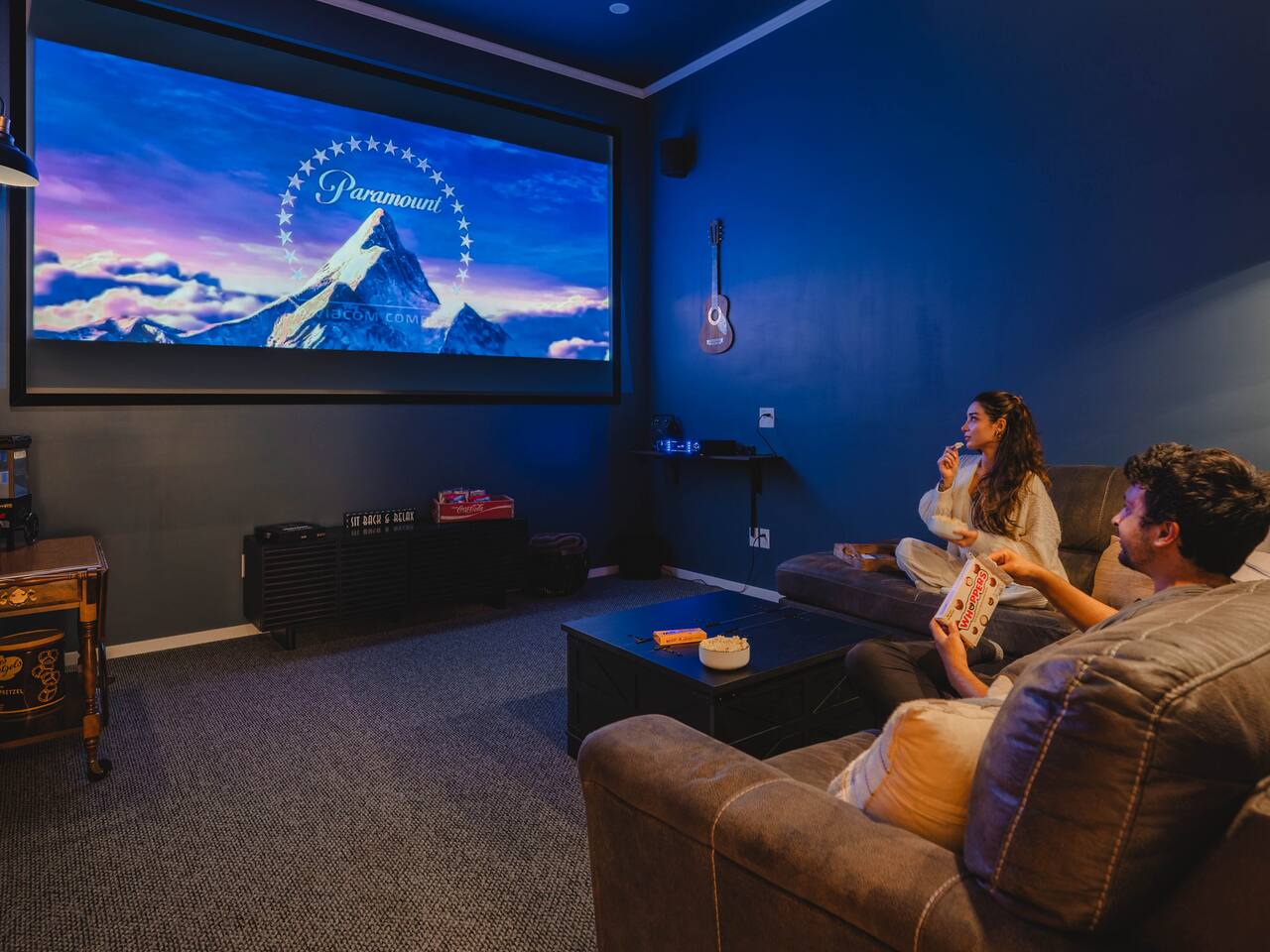 ✔ THEATER ROOM: 122” screen 🎬, HD projector, surround sound, karaoke 🎤 & mini bar snack. Converts to extra bedroom (pull-out full bed).